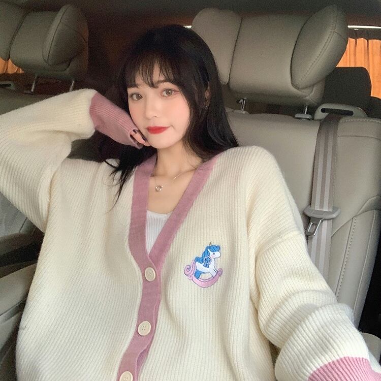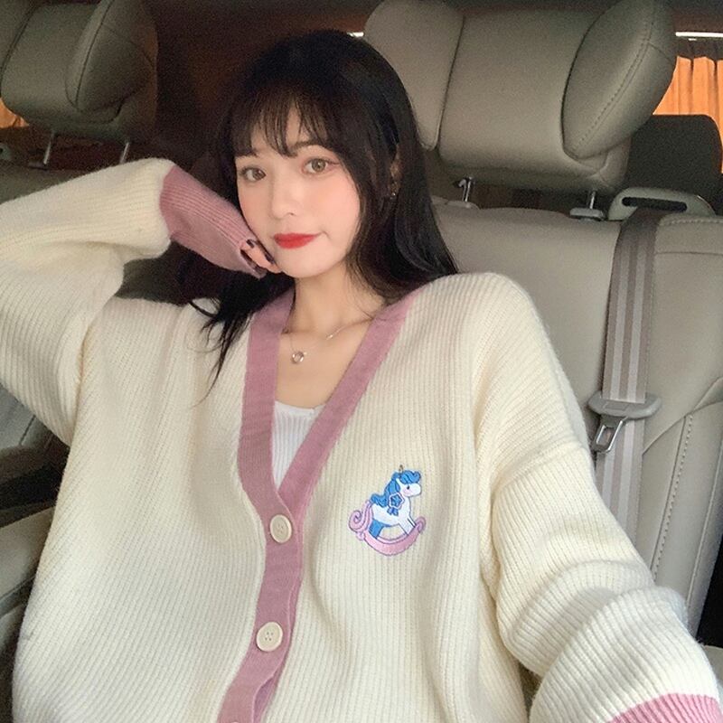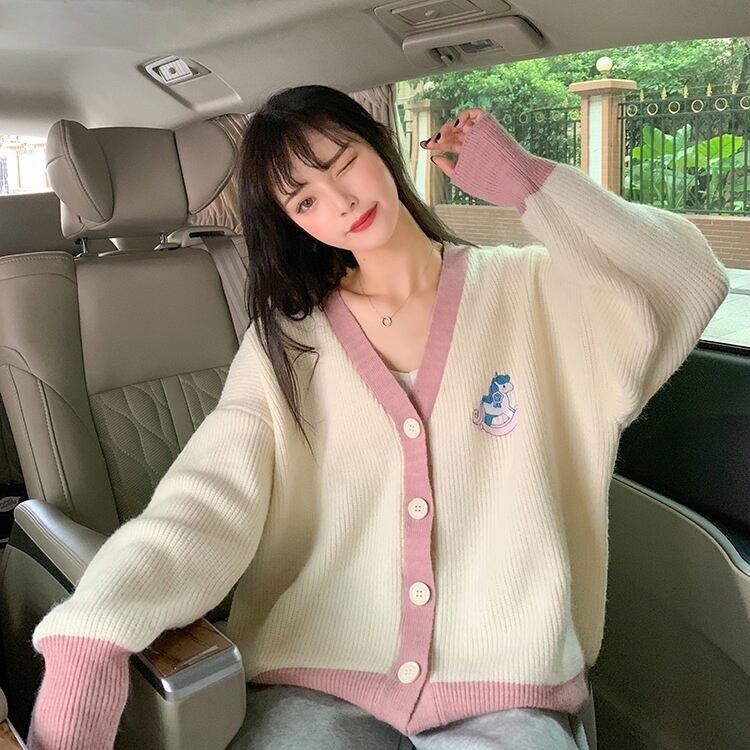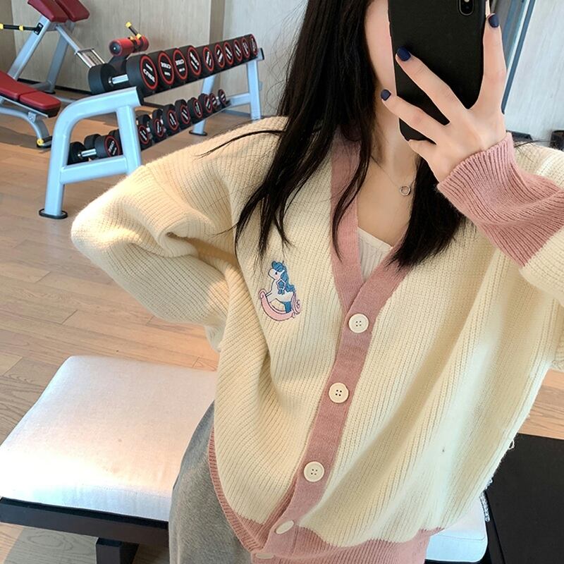 セーター コート スプリングオータムルーズスタイルVネックニットカーディガン 春物 秋物 スーパーモール21917498741