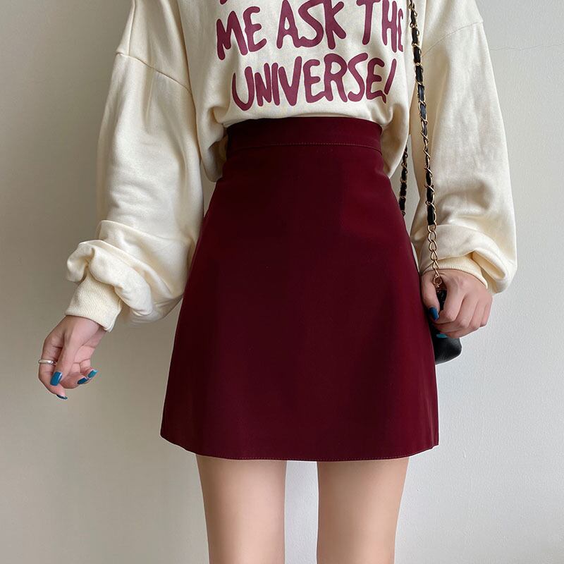 スタンダードレッドスカート スプリングオータムハイウェスト薄手Aラインショート レトロ 春物 秋物 スーパーモール58537802414