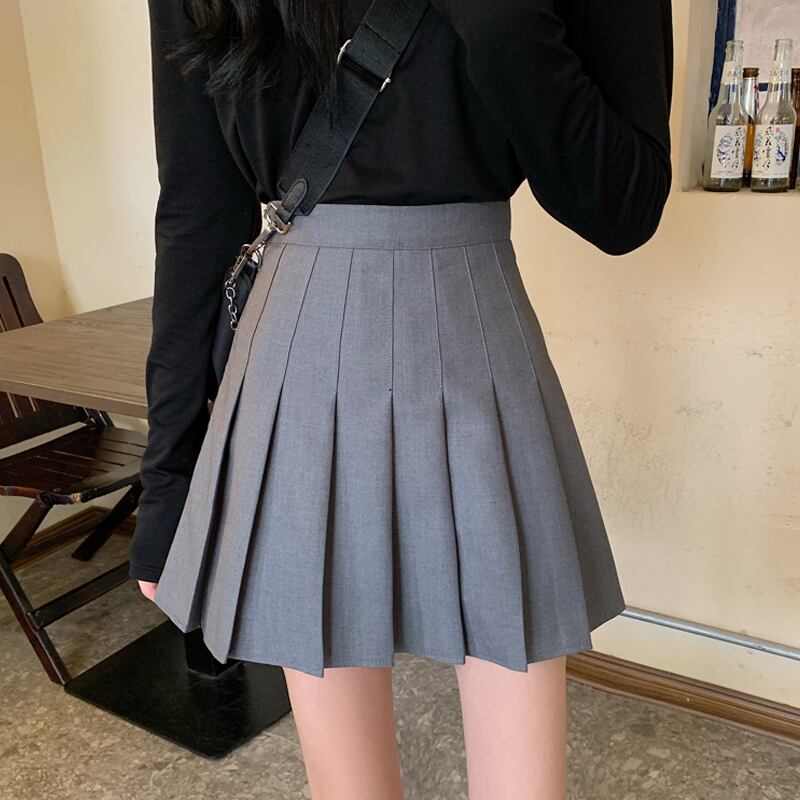 ブラックプリーツスカート ショートスプリングオータムハイウェストウェストAライン 春物 秋物 スーパーモール82509811479