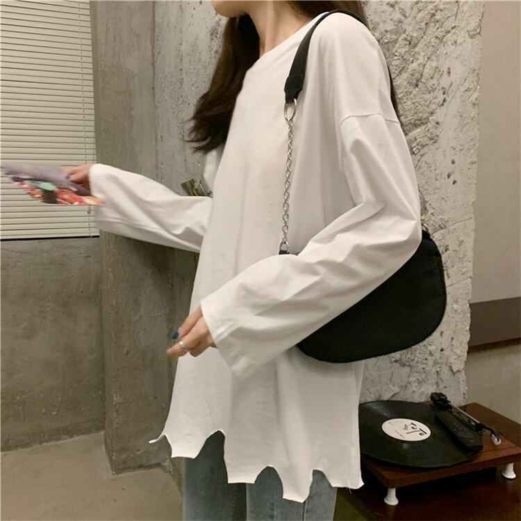 ホワイトTシャツ シャツ スプリングオータムルーズトップス ロング 春物 秋物 スーパーモール93872700667