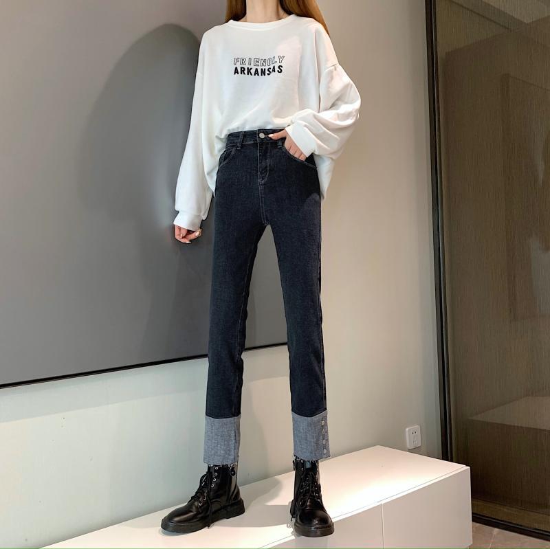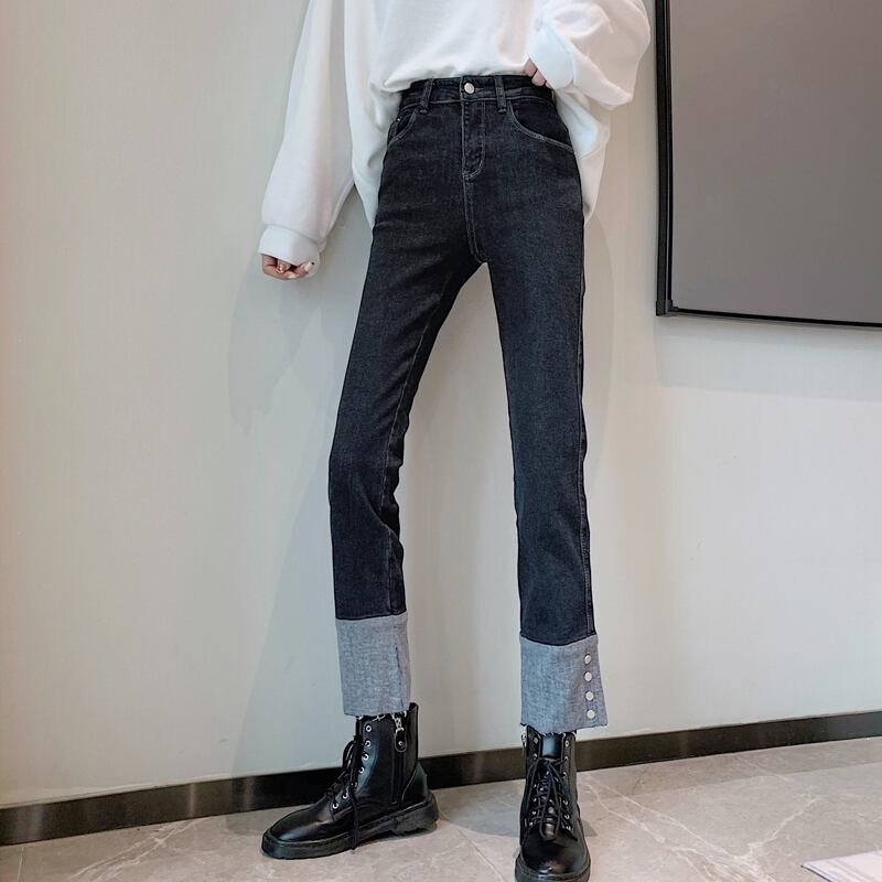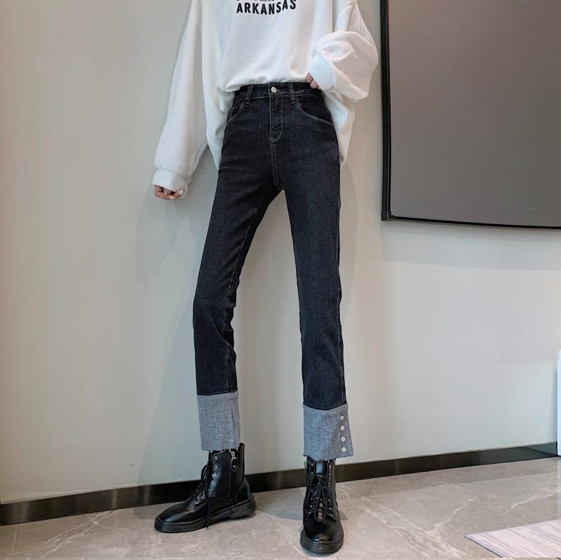 ブラックハイウェストジーンズ ルーズスプリングオータムパンツ 春物 秋物 スーパーモール51142528346