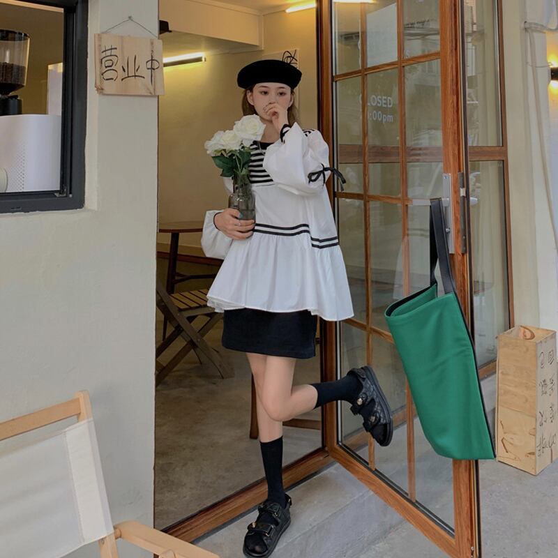 スプリングオータムトップス ホワイトシャツ ロング 春物 秋物 スーパーモール87619866691