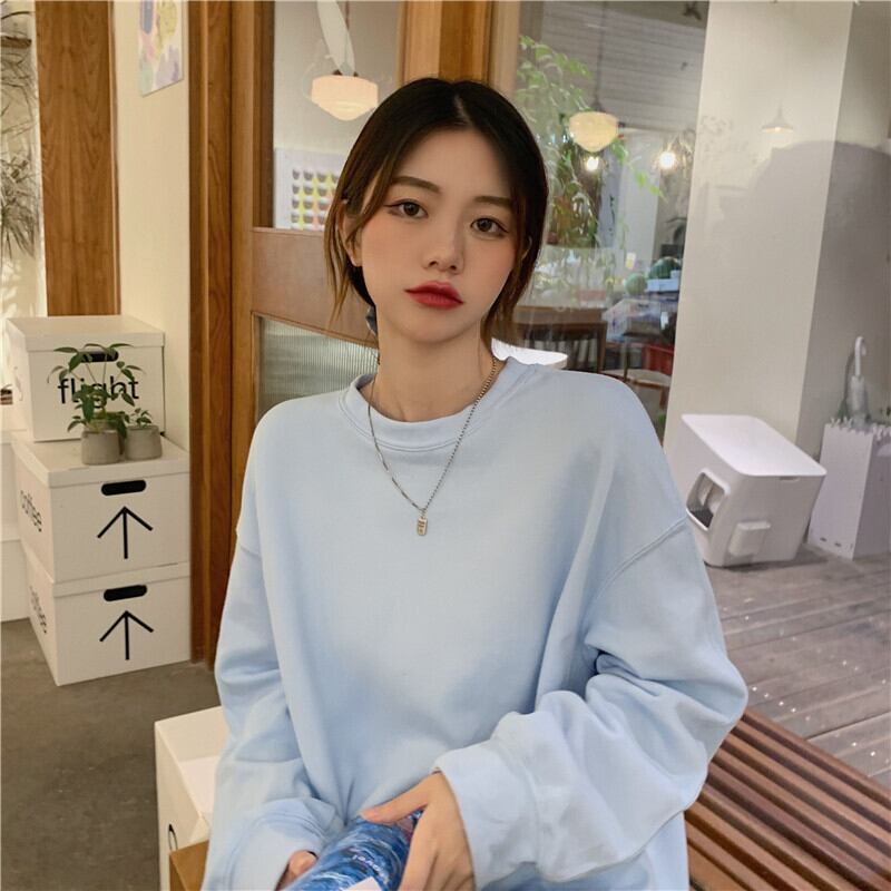 イエローラウンドネックセーター スプリングオータム薄手ルーズトップス 春物 秋物 Oネック スーパーモール37749386883