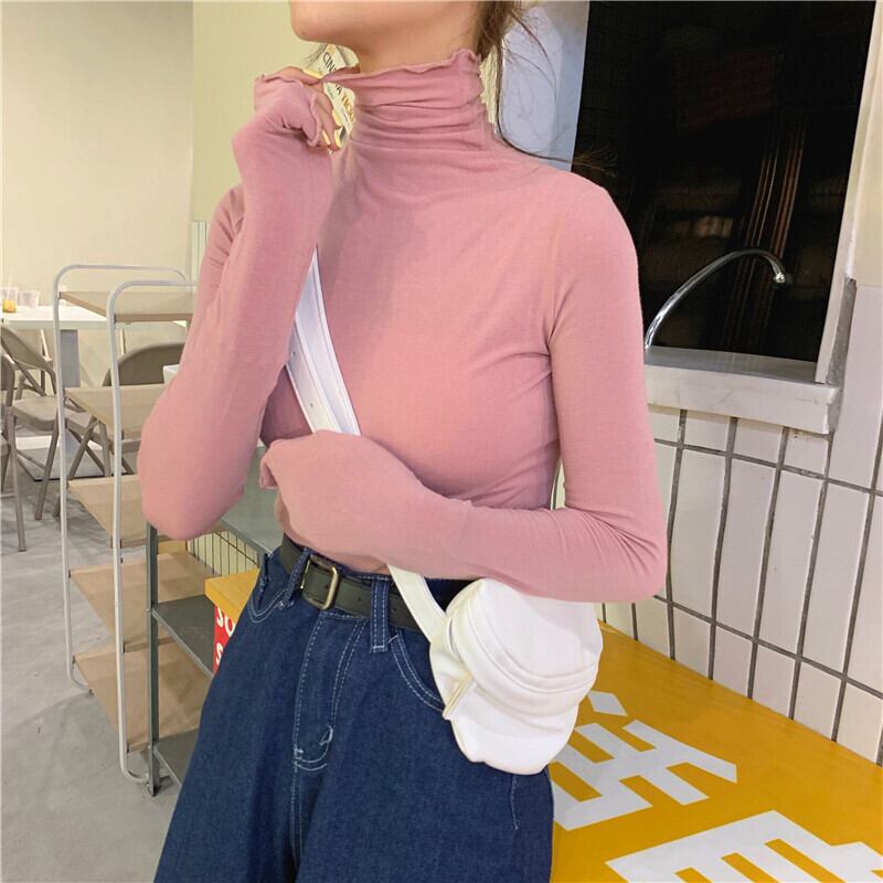 シャツ スプリングオータムスリム薄手トップス ロング ピンク 春物 秋物 スーパーモール47989879594