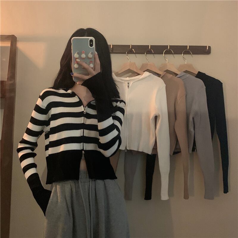 ストライプニットカーディガンスプリングオータム薄手コート スタイルショート 春物 秋物 ピュア スーパーモール494007943