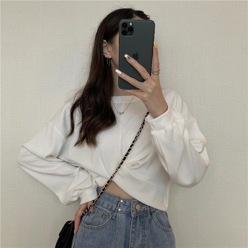 ホワイトショートセーター スプリングオータムスタイル 大人ガーリー スウィート キュート カジュアル 春物 秋物 スーパーモール3490866195