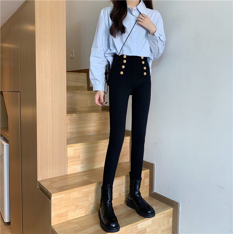 スプリングオータムブラックジーンズ パンツ ハイウェストウェスト薄手 春物 秋物 スーパーモール96647193366