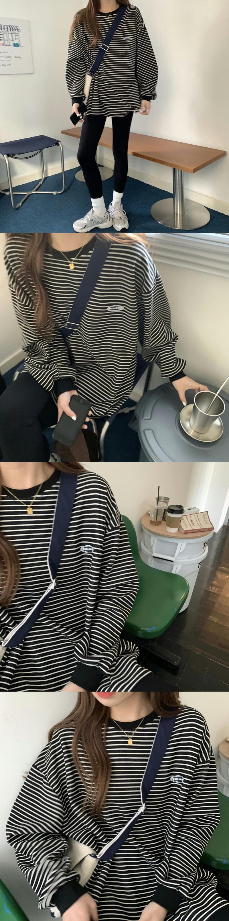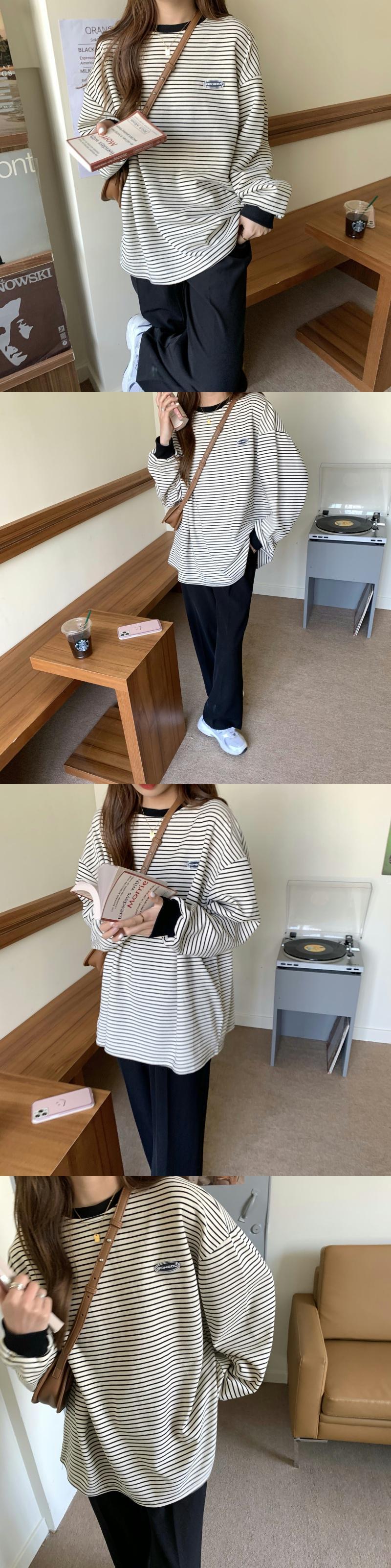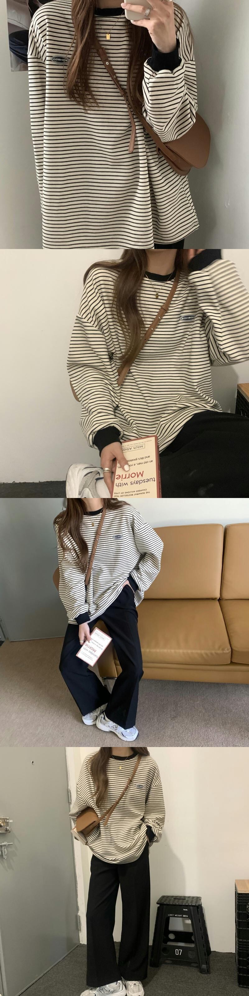 ストライプラウンドネックセーター ルーズスプリングオータムスタイルトップス 春物 秋物 Oネック スーパーモール47410325104