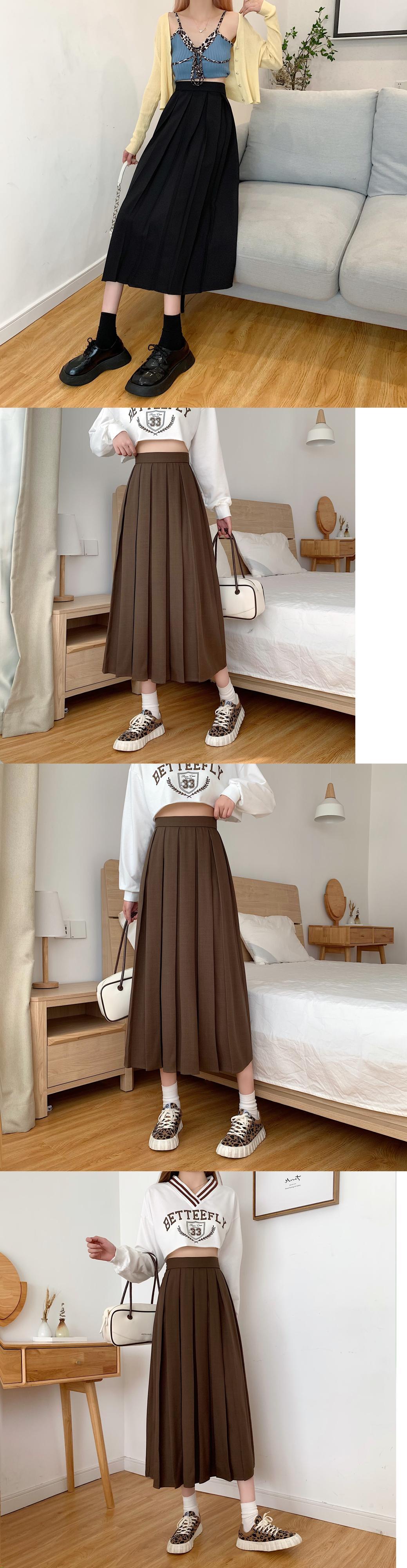 ブラックハイウェストウェストスカート スプリングオータムAラインプリーツロング 春物 秋物 スーパーモール26954323934
