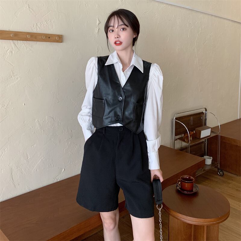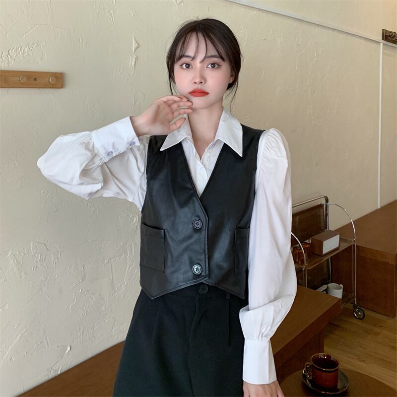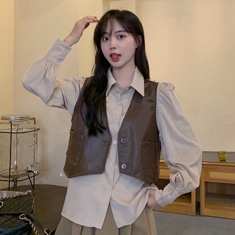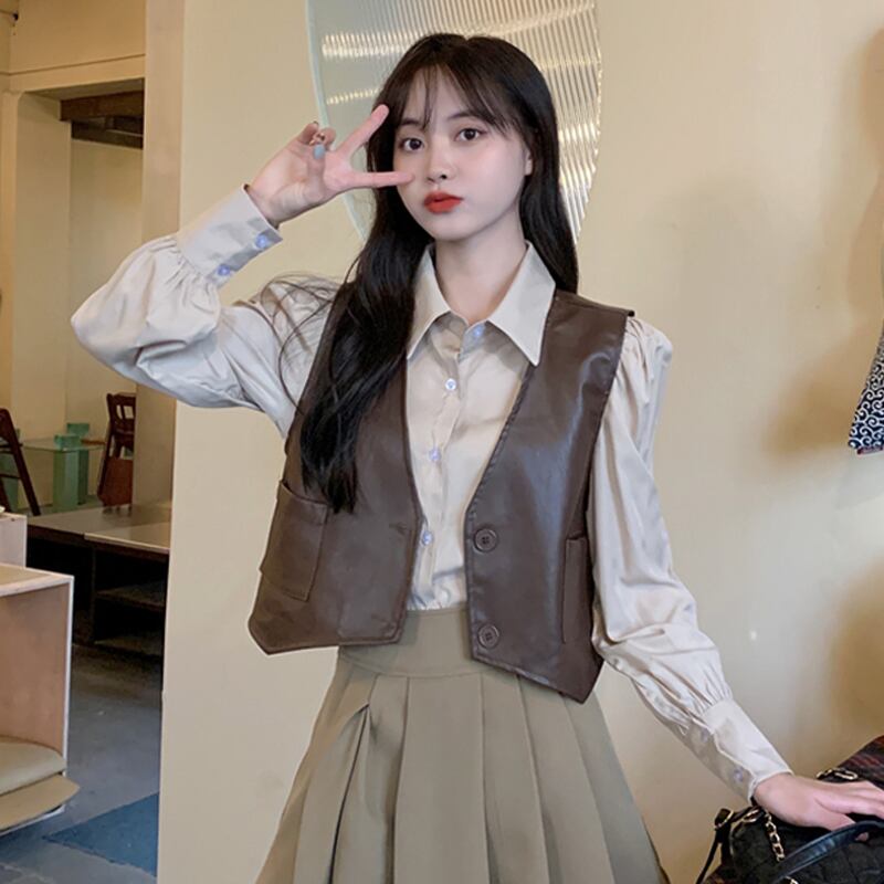 色:コーヒーカラーベストワンピース,ブラックベストワンピース,ワンピースアプリコットシャツ,白いシャツのワンピース