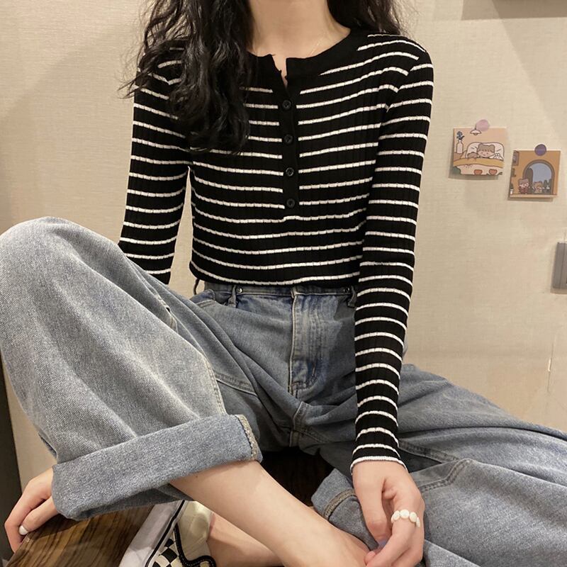 ストライプセーター スプリングオータムスリムシャツ ロング 春物 秋物 スーパーモール63548314360