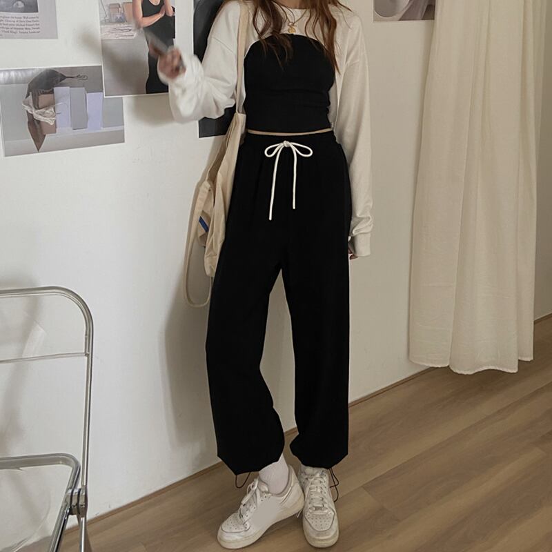 パンツ スプリングオータムグレーハイウェストウェストルーズ 春物 秋物 スーパーモール86850151001