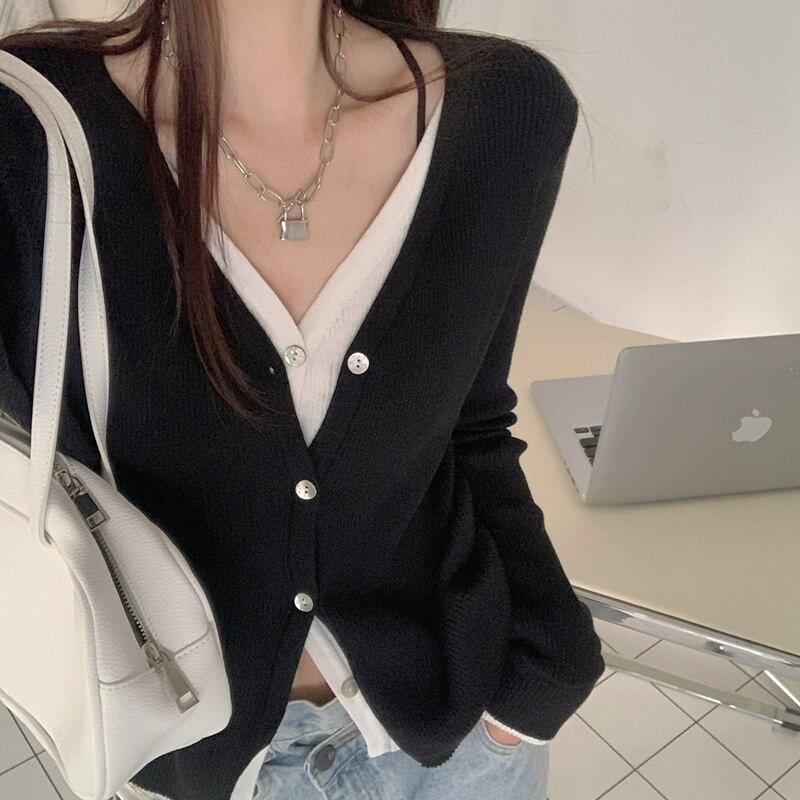 ブラックニットカーディガンジャケット スプリングオータムブラウス ロング 大人ガーリー スウィート キュート カジュアル 春物 秋物 スーパーモール69000696957