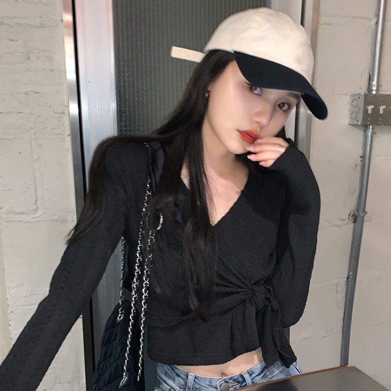 ショートトップス ドレス スプリングオータムVネックTシャツ ロング 大人ガーリー スウィート キュート カジュアル 春物 秋物 スーパーモール97367269127