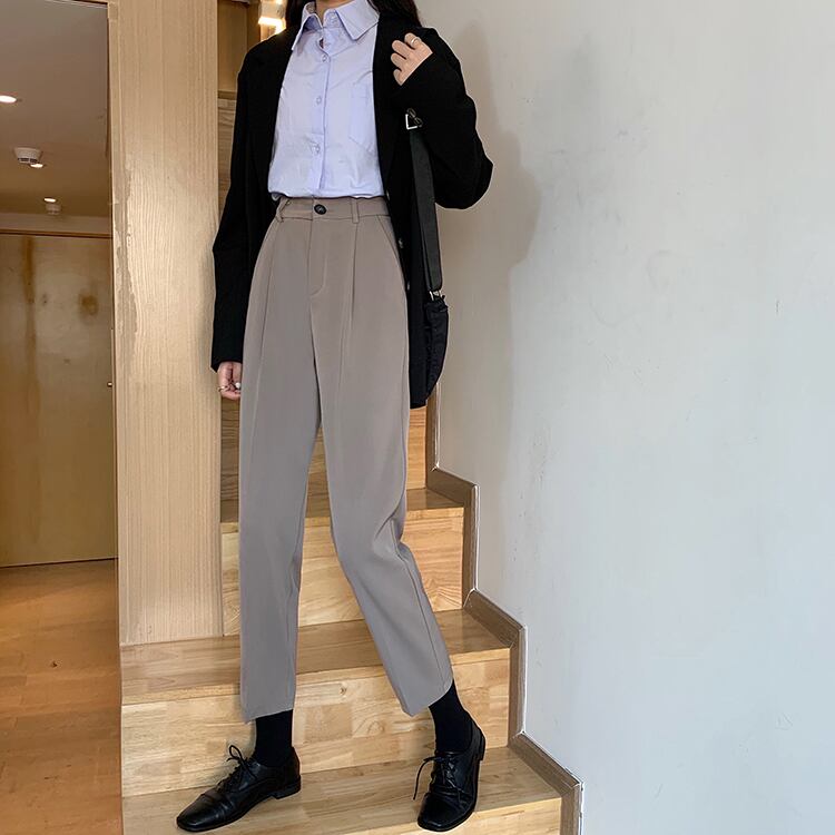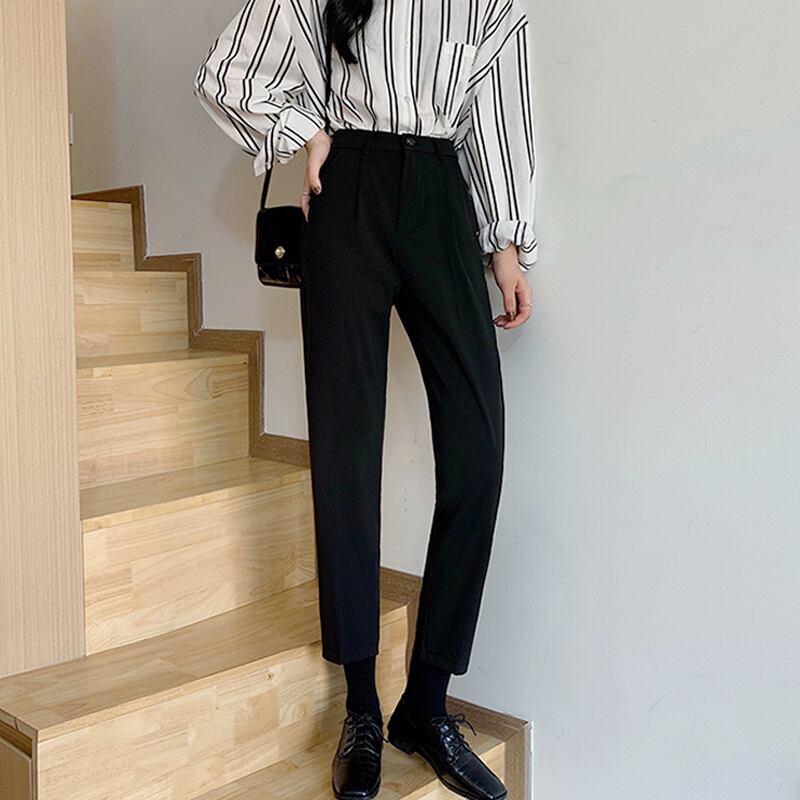 ブラックパンツ スプリングオータムハイウェストウェストカジュアルルーズ薄手 春物 秋物 スーパーモール89591875064