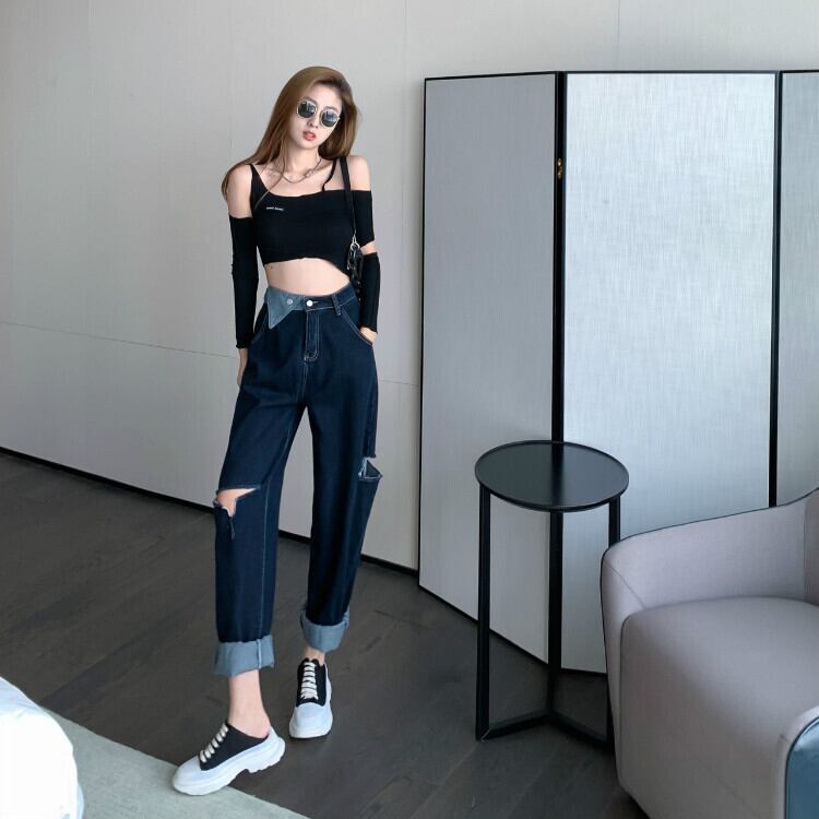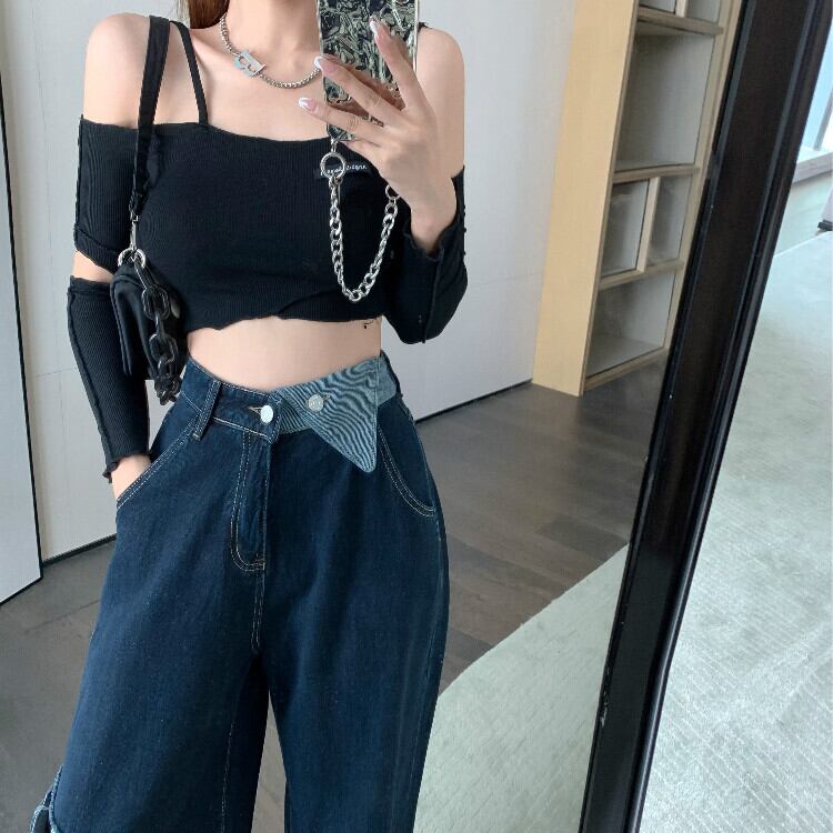 スプリングオータムハイウェストウェストジーンズ ルーズパンツ 春物 秋物 スーパーモール65582209348