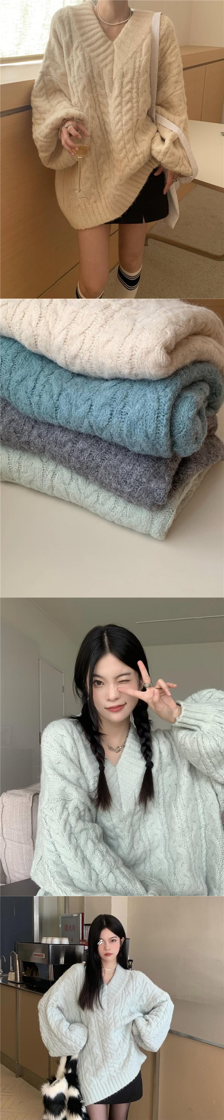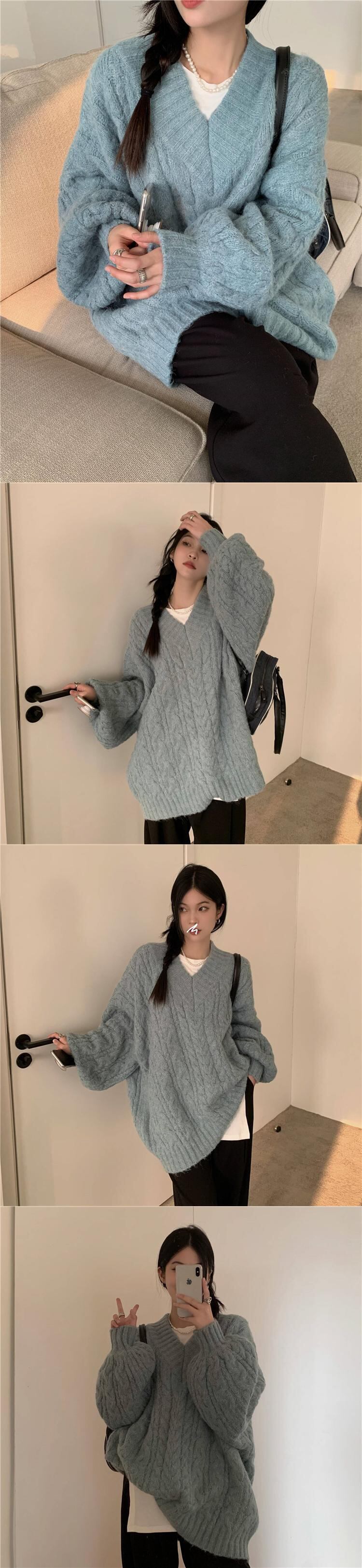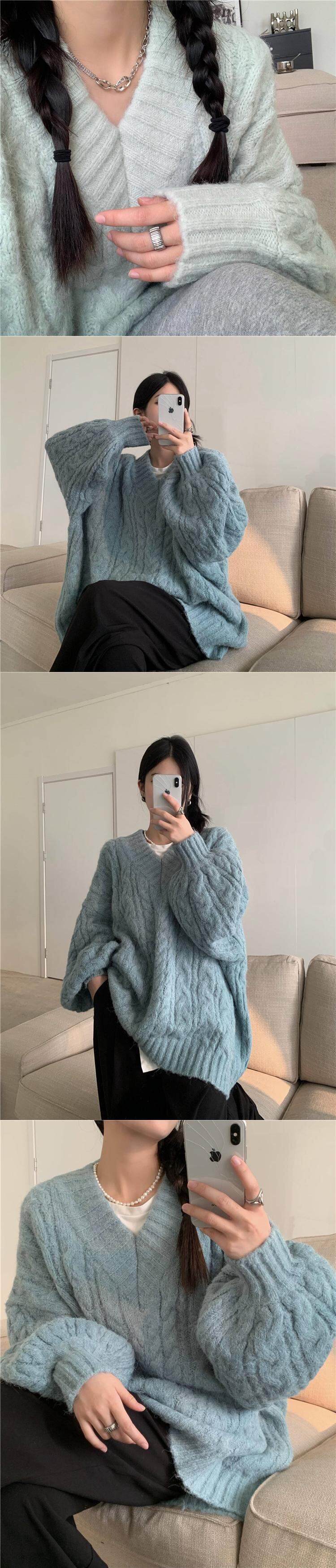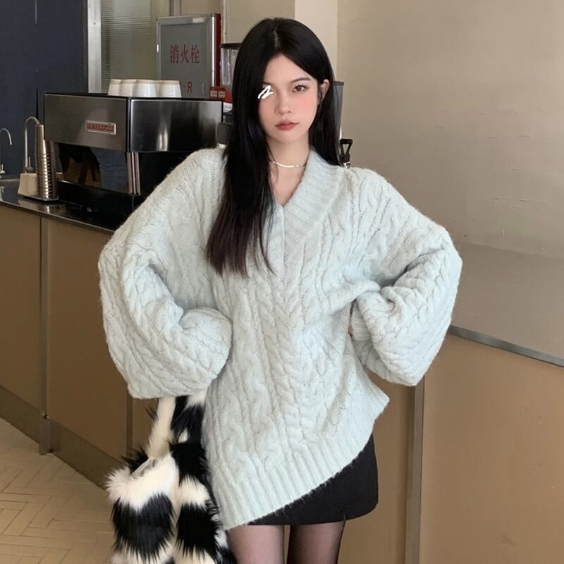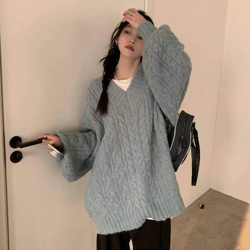 スタイルVネックプルオーバー セーター スプリングオータムルーズニットトップス 春物 秋物 スーパーモール76632952566