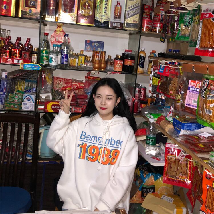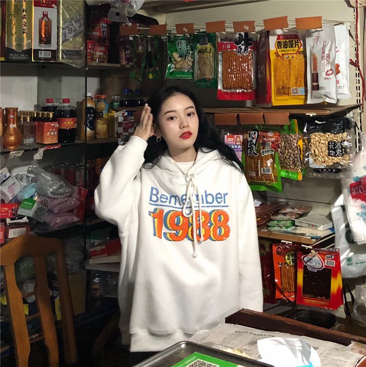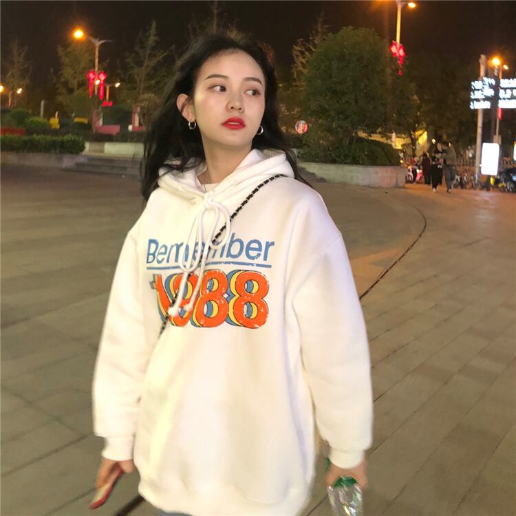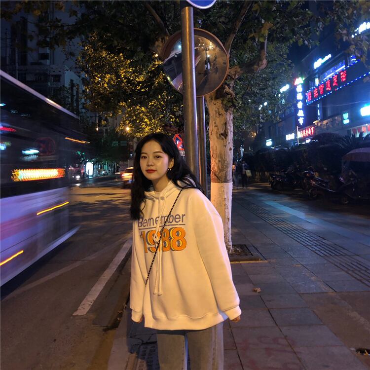 ホワイトフードスウェット オータムウィンターベルベットルーズトップス 秋物 冬物 スーパーモール24330741301