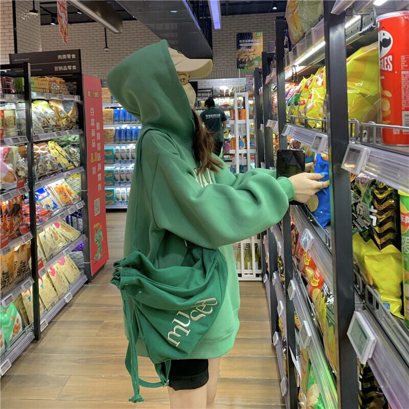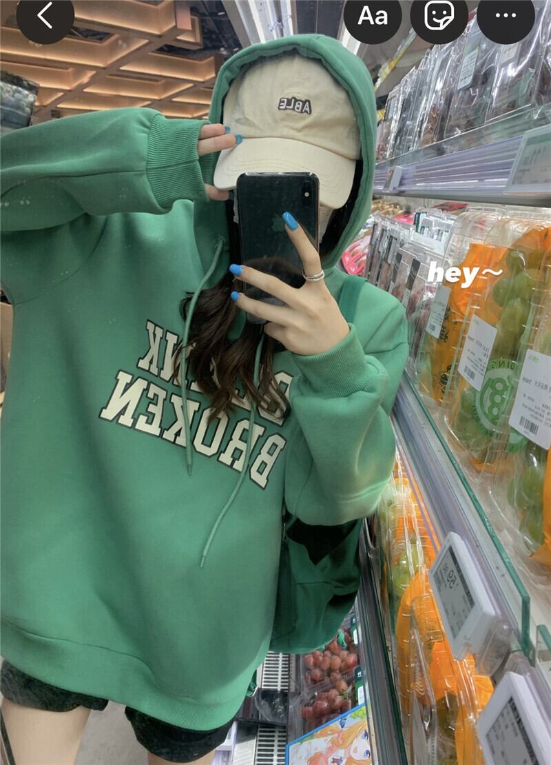 グリーンフードスウェット オータムウィンターベルベットルーズスタイル 秋物 冬物 スーパーモール96963955333