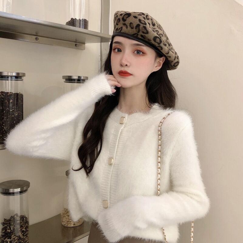 ベルベットホワイトセーター カーディガンジャケット スプリングオータムニットトップス 春物 秋物 スーパーモール39969011093