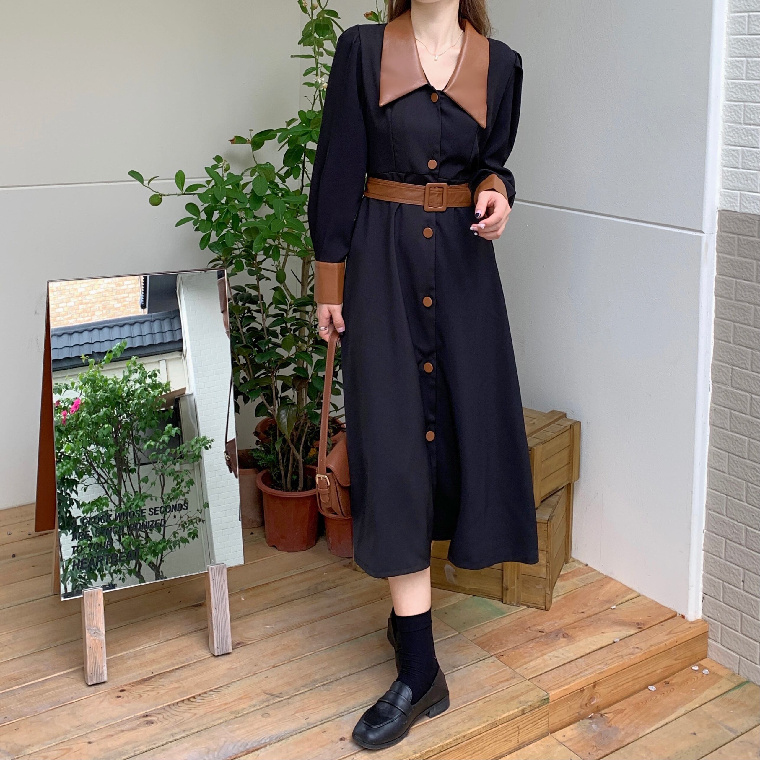 ブラックロングドレス スプリングオータムスタンダードスカート レトロ 春物 秋物 スーパーモール62366241050