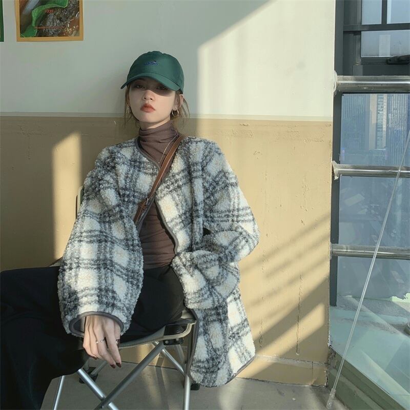 ウール格子柄ジャケット オータムウィンターベルベットスタンダード レトロ 秋物 冬物 スーパーモール38388324066