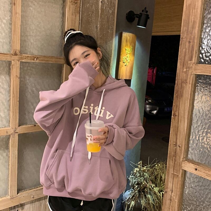 フードスウェット レディースオータムウィンターベルベットルーズ 秋物 冬物 パープル スーパーモール90726839123