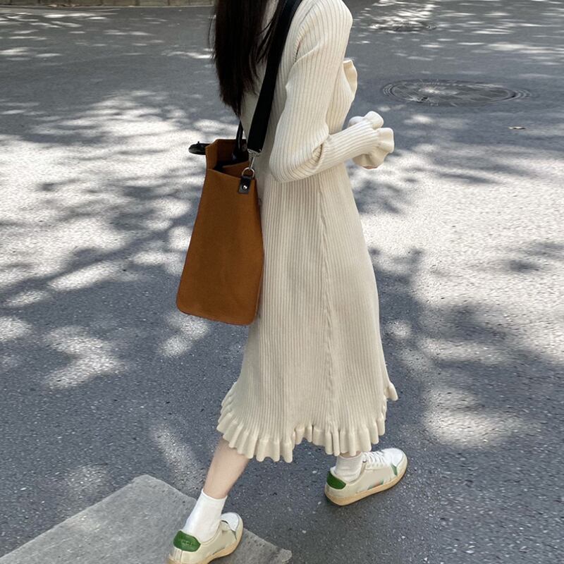 ニットドレス スプリングオータムウェストロングスカート 春物 秋物 スーパーモール82910793216