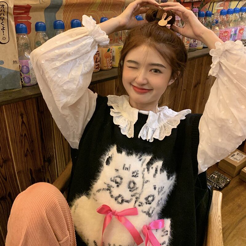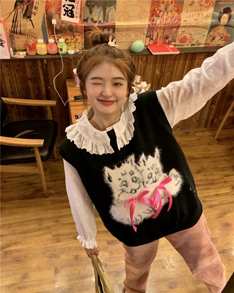 ブラックニットスプリングオータムスタンダードセーター レトロ 春物 秋物 スーパーモール57628518446