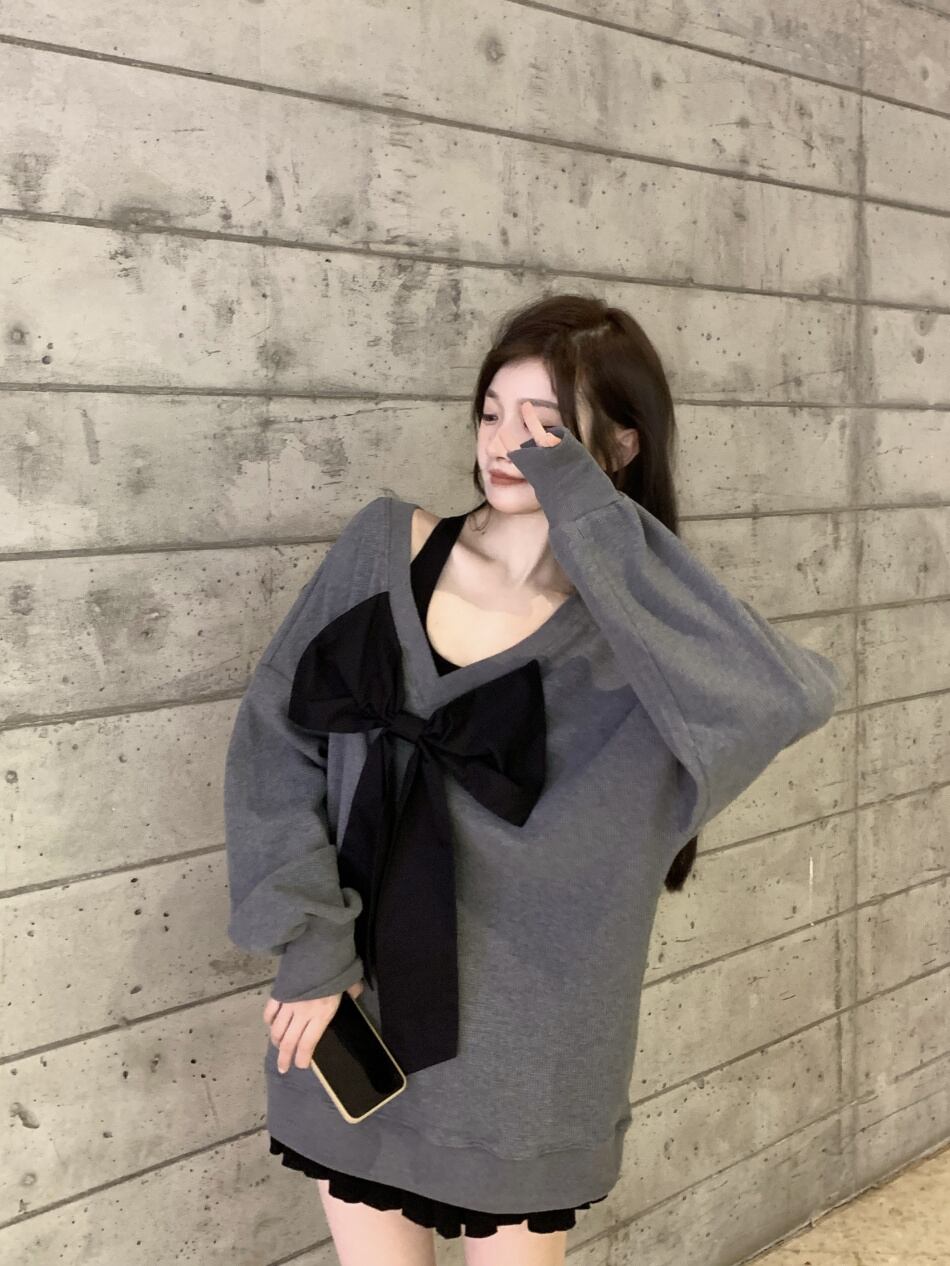 Vネックセーター スプリングオータムルーズシャツ リボン 春物 秋物 スーパーモール84017773701
