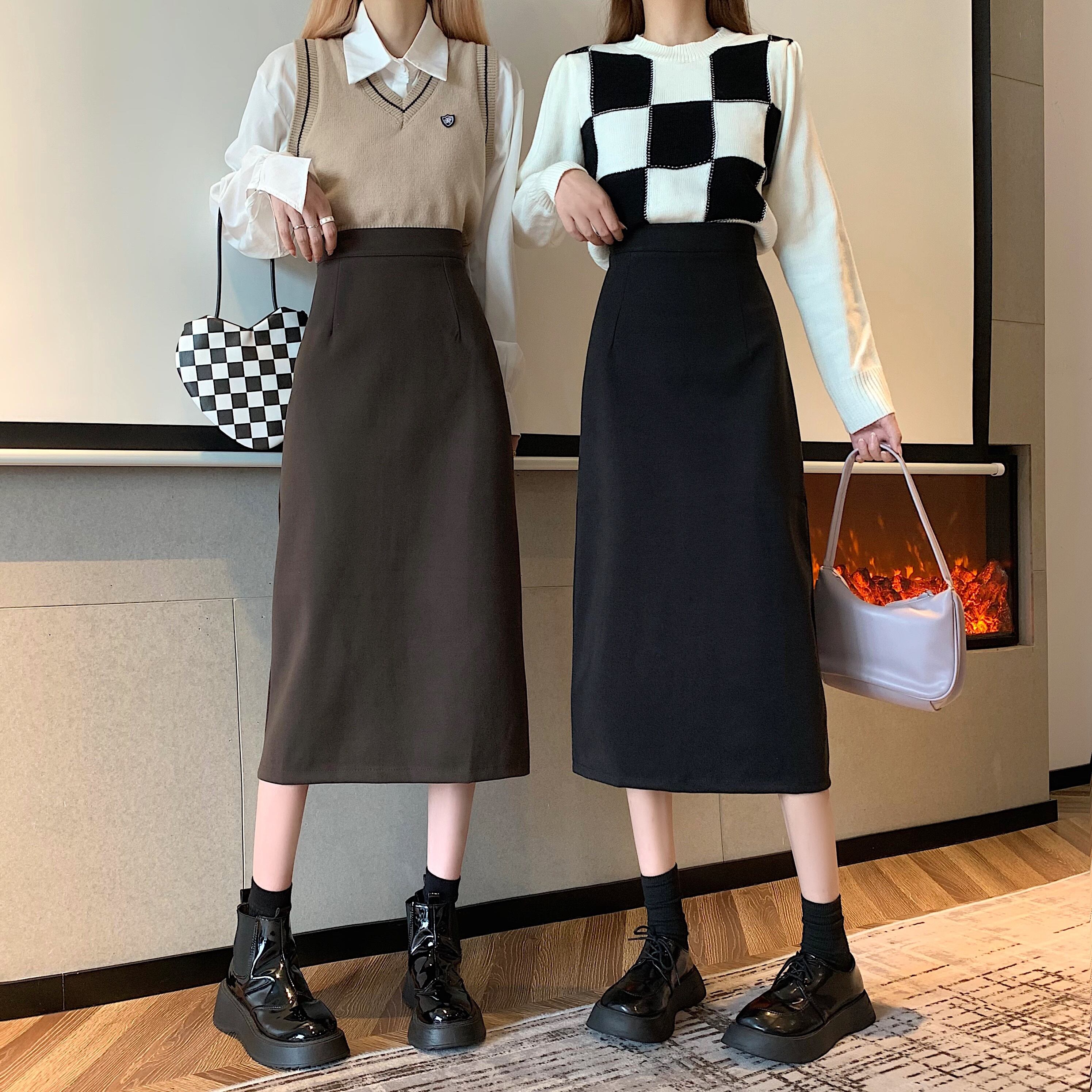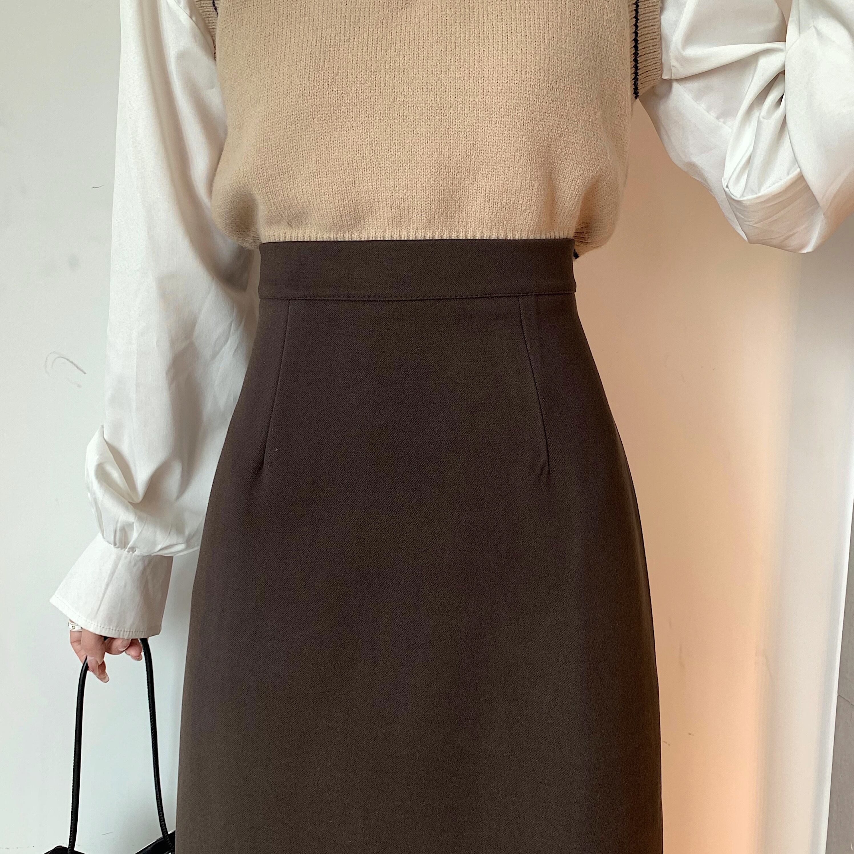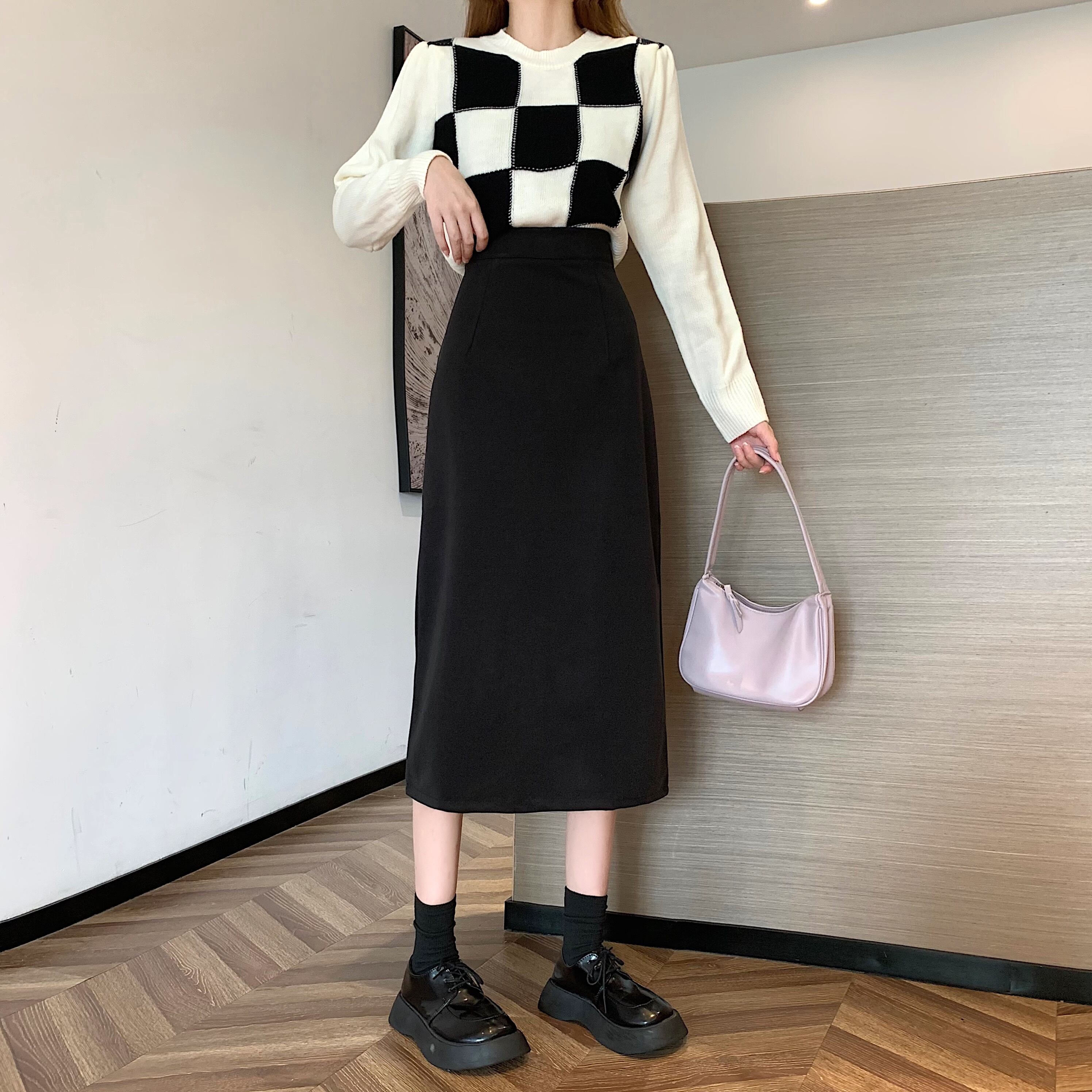 ブラックスカート スプリングオータムAラインハイウェスト薄手 春物 秋物 スーパーモール97159022864