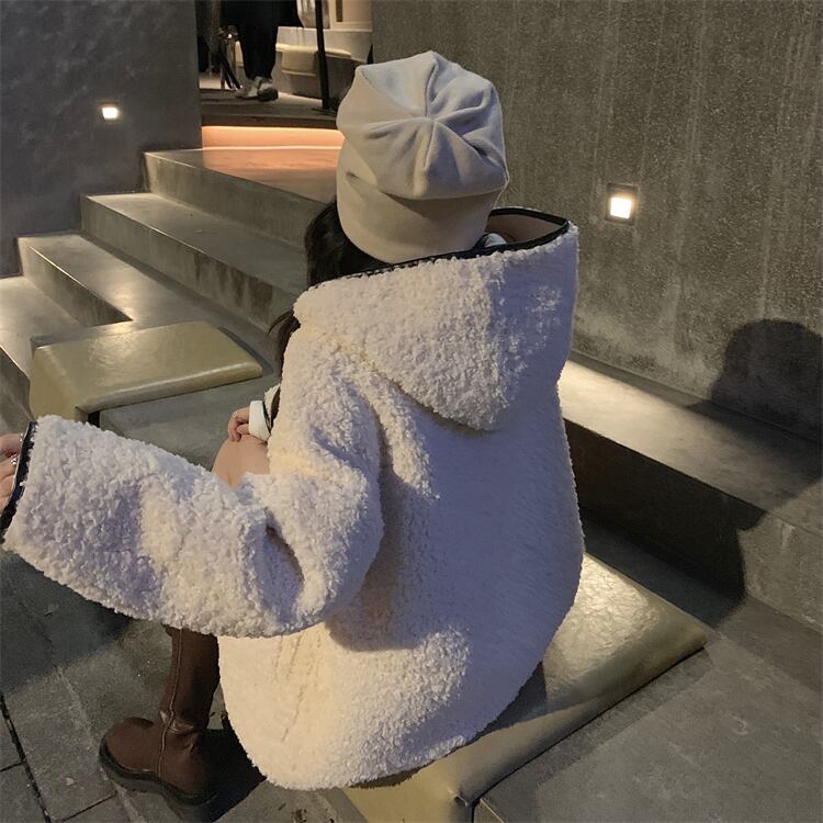 ホワイトウールフードジャケット オータムウィンタースタイル 秋物 冬物 スーパーモール40998516175
