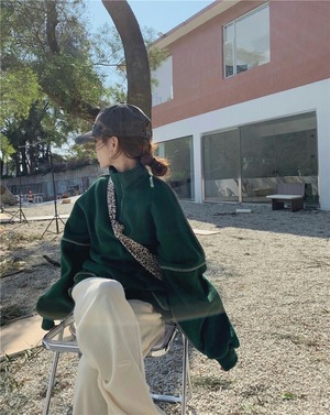 スタンダードグリーンTシャツ スプリングオータムルーズスタイルトップス レトロ 春物 秋物 スーパーモール11052786780