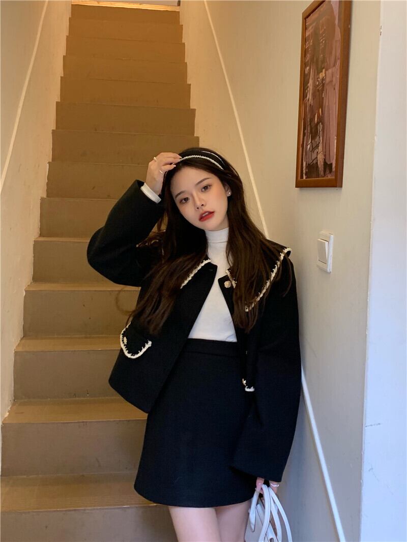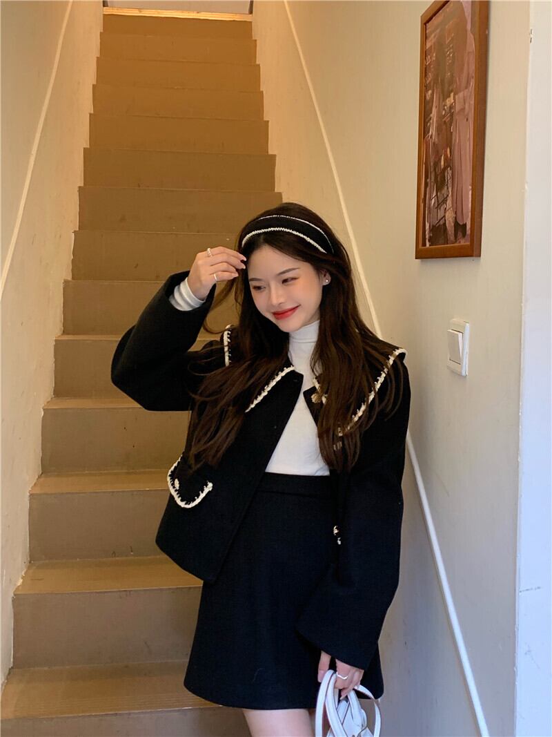 ブラックブレザー オータムウィンタースタイルスタンダードショート レトロ ストリート 秋物 冬物 スーパーモール66789456829