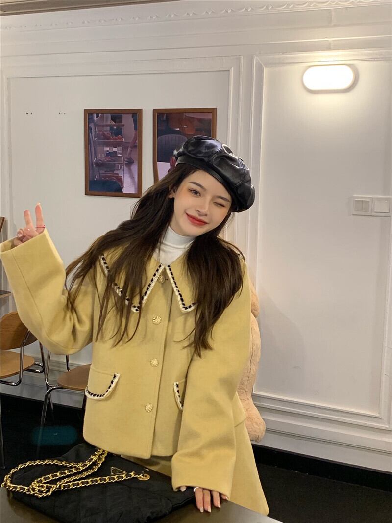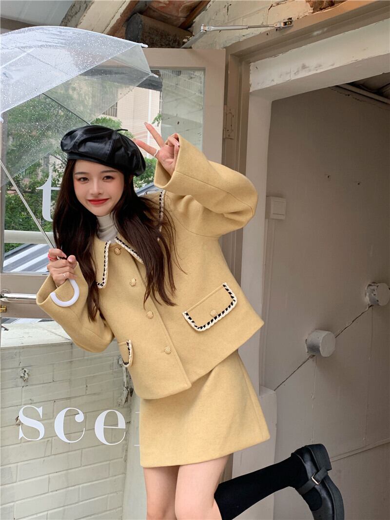 色:シングルイエロージャケット,黄色のハーフスカートワンピース,シングルブラックジャケット,黒のハーフスカートワンピース