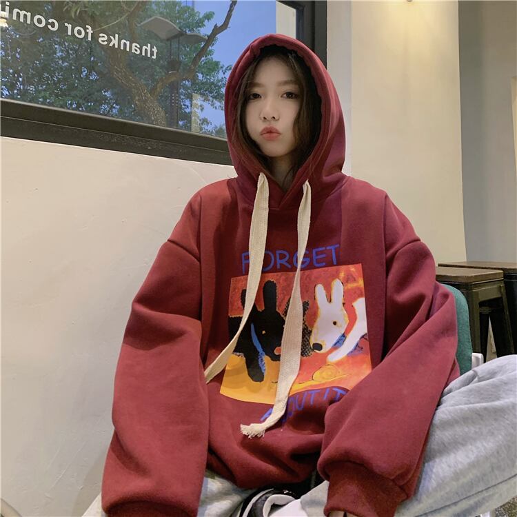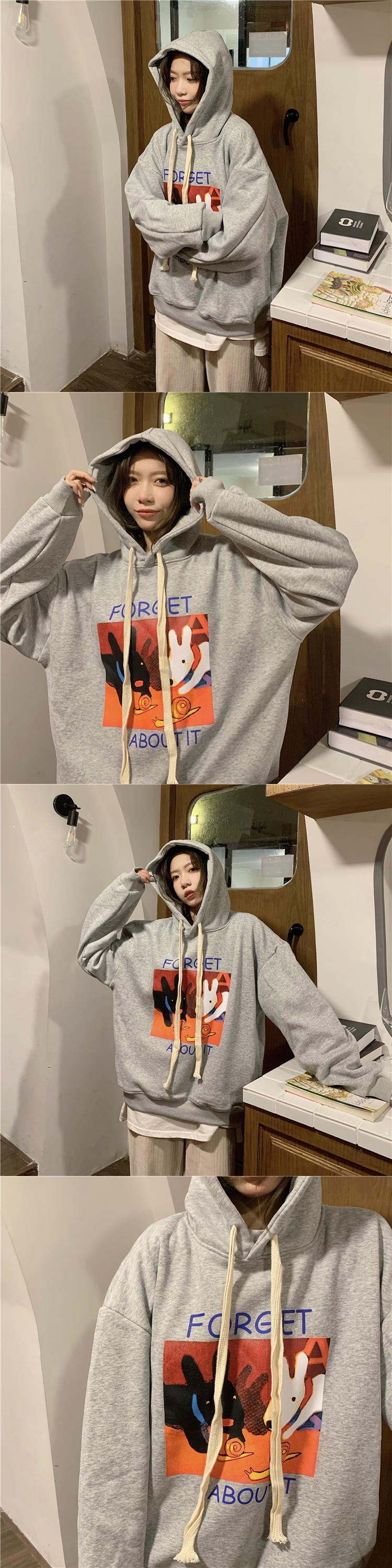 ブルーフードスウェット オータムウィンターベルベットルーズトップス 秋物 冬物 スーパーモール76698098699