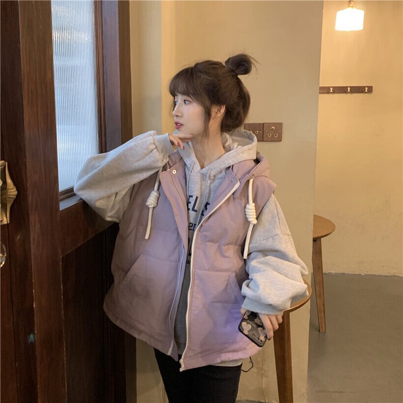 オータムウィンターレッドフードノースリーブジャケット コットン 秋物 冬物 パープル スーパーモール44052137539