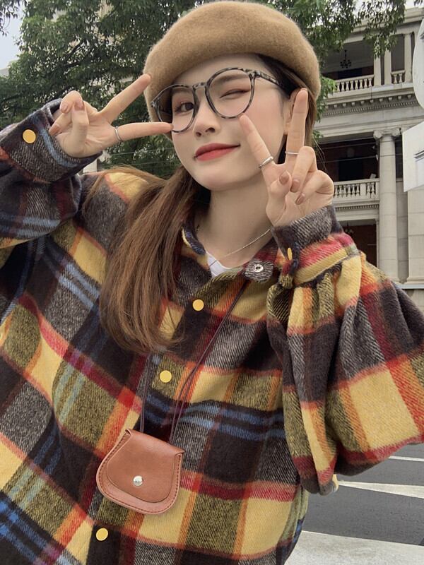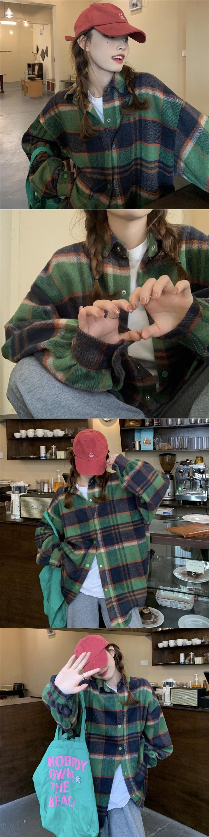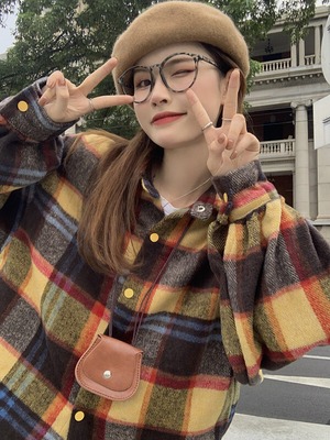 スプリングオータム格子柄シャツ ジャケット スタンダードスタイル レトロ 春物 秋物 スーパーモール78050696616