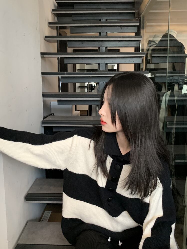 ストライププルオーバー セーター スプリングオータムスタンダードルーズニットトップス レトロ 春物 秋物 スーパーモール8903007768