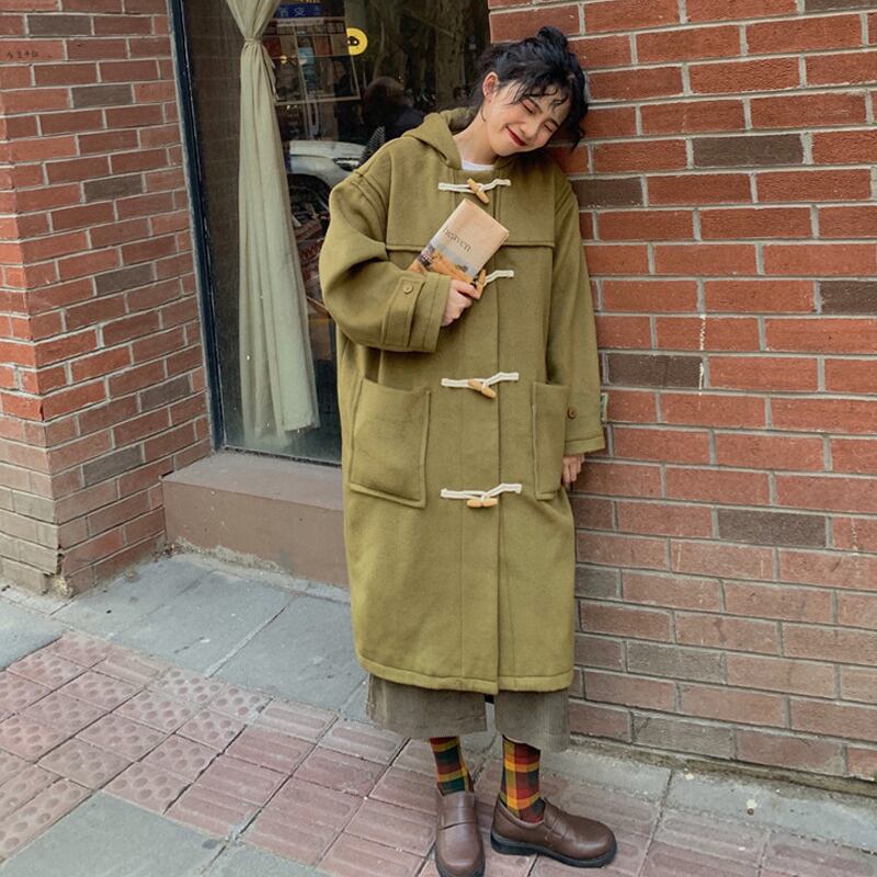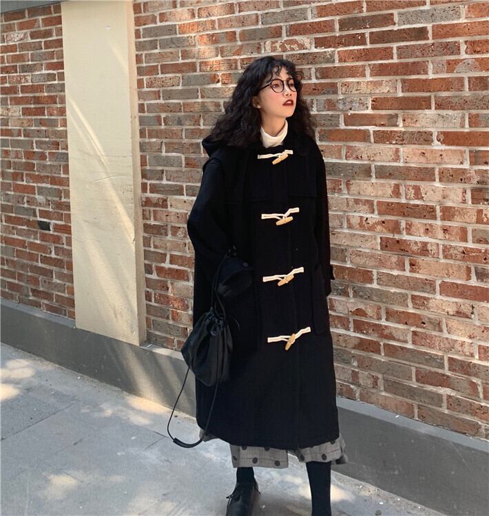 ブラックジャケット オータムウィンターロングスタンダードボタンコート レトロ 秋物 冬物 スーパーモール83995057902