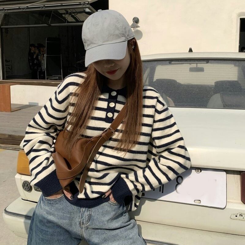 スタンダードストライプセーター スプリングオータムプルオーバー レトロ 春物 秋物 スーパーモール51709335657