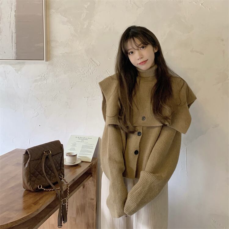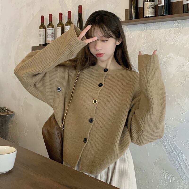 カーキセーター コート レディースウィンタールーズスタンダードニットカーディガン レトロ 冬物 スーパーモール81865126350