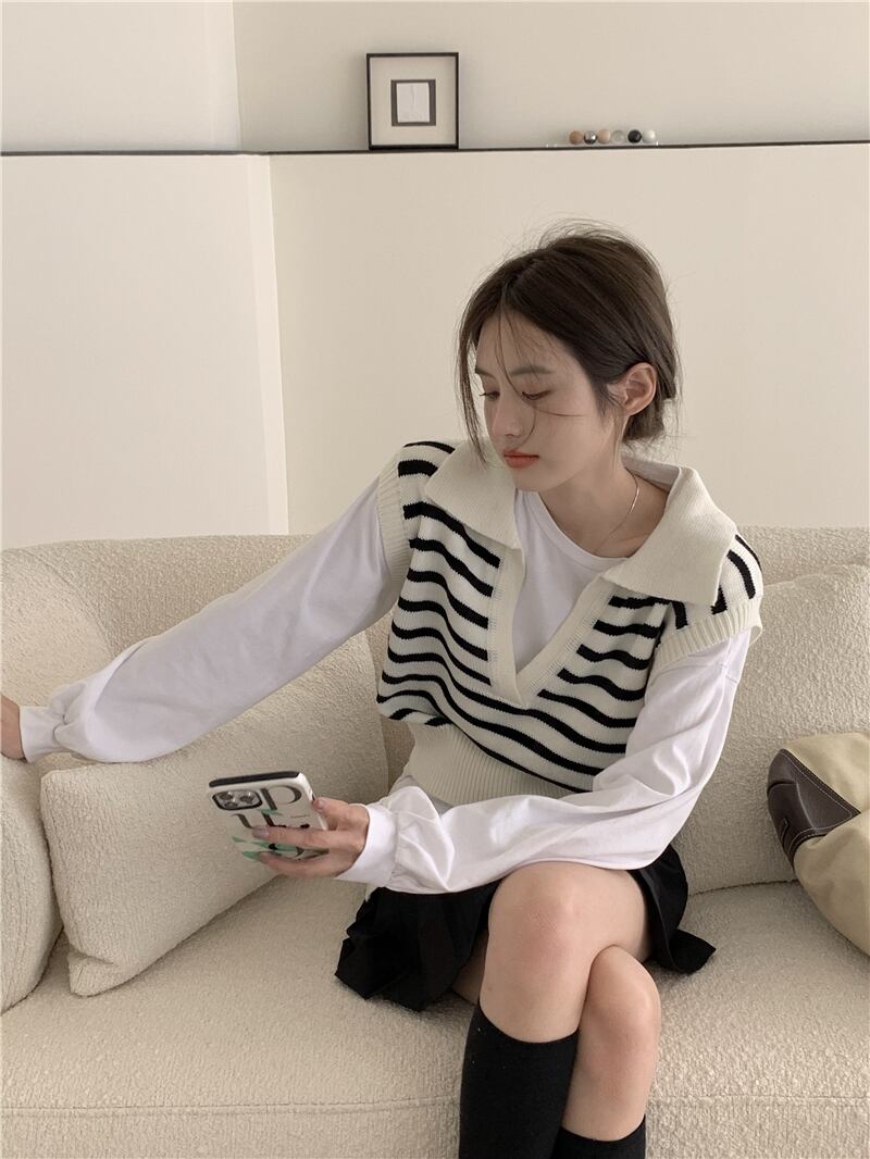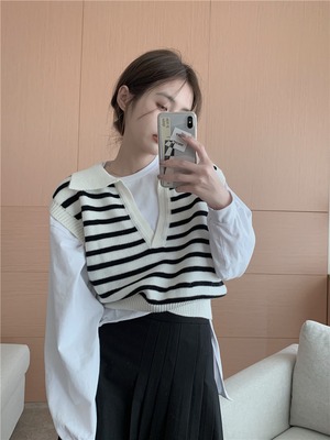 ストライプニットスプリングオータムスタンダード レトロ 春物 秋物 スーパーモール81522539472