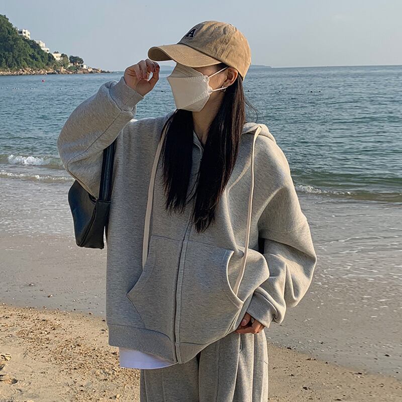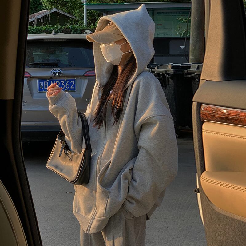 グレーフードスウェット ジャケット レディースオータムウィンターベルベットルーズ 秋物 冬物 スーパーモール41450220849
