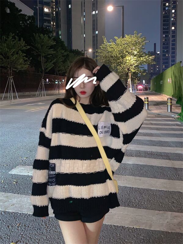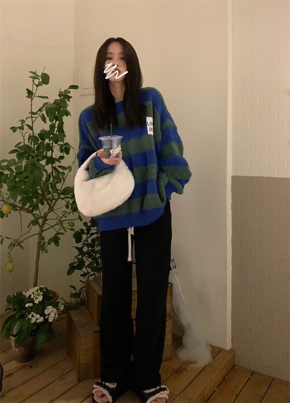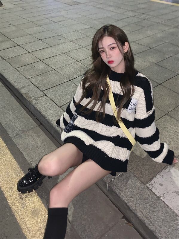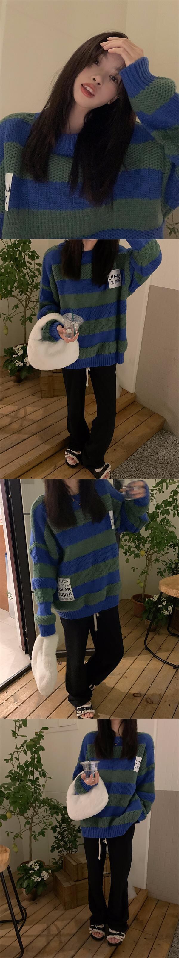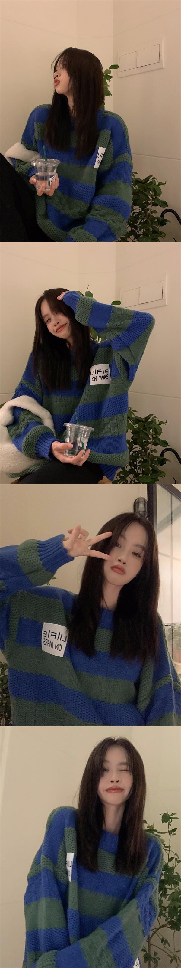 ストライププルオーバー セーター オータムウィンタールーズスタイルトップス ロング 秋物 冬物 スーパーモール82727460307