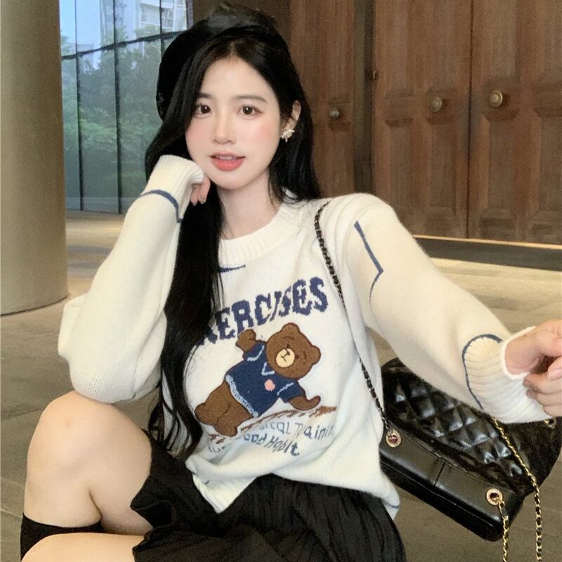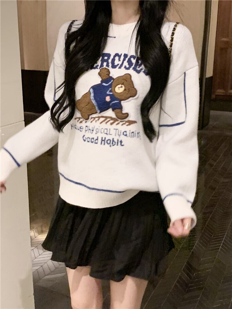 ホワイトラウンドネックセーター オータムウィンタールーズスタンダード レトロ 秋物 冬物 Oネック スーパーモール4419842782
